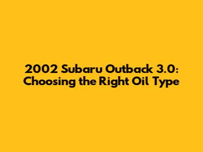 2002 Subaru Outback 3.0: Choosing The Right Oil Type