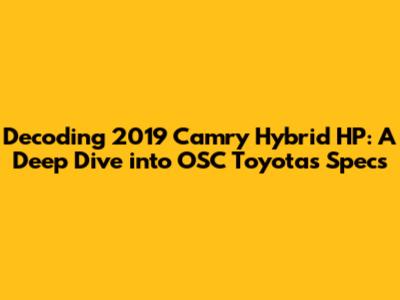2019 Camry Hybrid HP: Decoding OSC Toyota's Specs