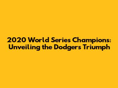 The 2020 season tested the Dodgers in ways they could not have imagined. From the shortened season to the empty stadiums, they faced unprecedented challenges. The Dodgers' ability to adapt and thrive in these conditions speaks volumes about their character and resolve. The players, coaches, and staff were united in their pursuit of a championship. Their collective effort and determination propelled them to overcome every obstacle that came their way. They demonstrated the power of teamwork, perseverance, and belief in themselves. This victory was not just a win for the team, but a symbol of hope and resilience for their fans and community during a difficult time. This championship was a beacon of light, reminding everyone that even in the darkest of times, greatness can be achieved through dedication, hard work, and an unwavering spirit. The Dodgers' 2020 World Series triumph is a lasting reminder of the power of unity and the extraordinary impact of sports.