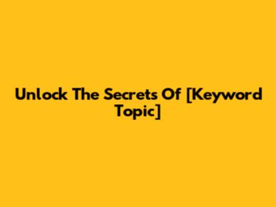 Unlock The Secrets Of [Keyword Topic]