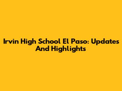 Irvin High School El Paso: Updates And Highlights