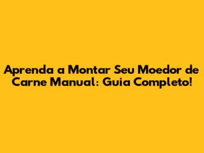 Passo a Passo: Montando Seu Moedor de Carne Manual