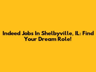 Indeed Jobs In Shelbyville, IL: Find Your Dream Role!