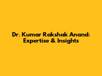Dr. Kumar Rakshak Anand: Expertise & Insights