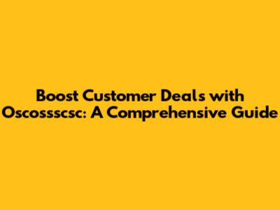 Boost Customer Deals With Oscossscsc: A Comprehensive Guide