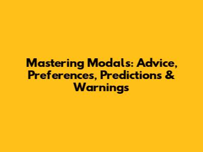 Mastering Modals: Advice, Preferences, Predictions & Warnings