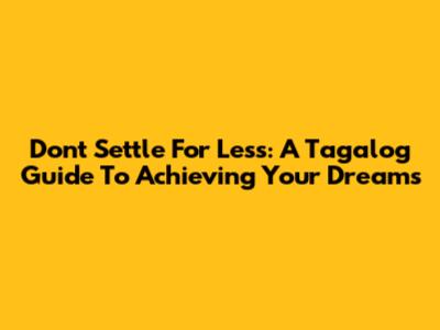Don't Settle For Less: A Tagalog Guide To Achieving Your Dreams