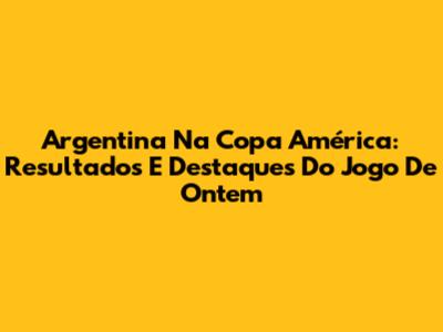 Argentina Na Copa América: Resultados E Destaques Do Jogo De Ontem