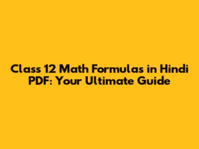 Class 12 Math Formulas In Hindi PDF: Your Ultimate Guide
