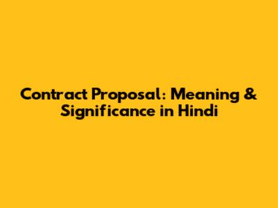Contract Proposal: Meaning & Significance In Hindi