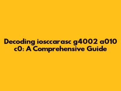 Hey guys! Ever stumbled upon a mysterious string of characters like iosccarasc g4002 a010 c0 and wondered what it meant? Well, you're not alone! These alphanumeric codes often pop up in the world of electronics, manufacturing, and product identification. Let's dive deep into understanding what this specific code might signify and how to decode it, making it super easy and fun.