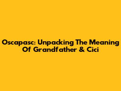 Oscapasc: Unpacking The Meaning Of Grandfather & Cici