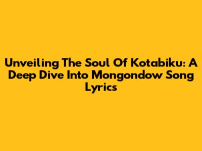 Unveiling The Soul Of Kotabiku: A Deep Dive Into Mongondow Song Lyrics