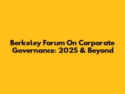 Berkeley Forum On Corporate Governance: 2025 & Beyond