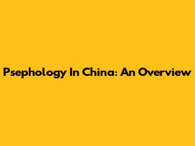 Psephology In China: An Overview