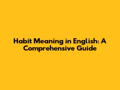 Habit Meaning In English: A Comprehensive Guide