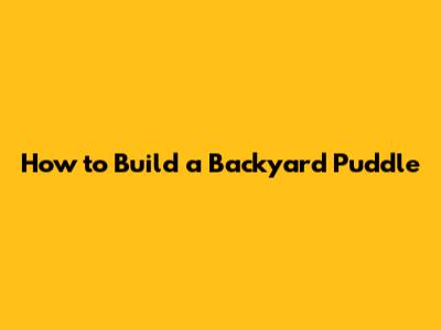 How To Build A Backyard Puddle