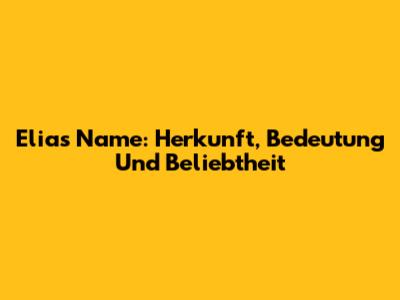 Elias Name: Herkunft, Bedeutung Und Beliebtheit