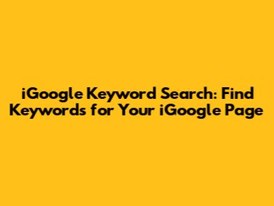 IGoogle Keyword Search: Find Keywords For Your IGoogle Page