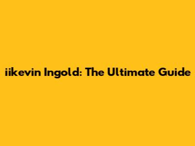 Iikevin Ingold: The Ultimate Guide