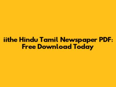 Iithe Hindu Tamil Newspaper PDF: Free Download Today