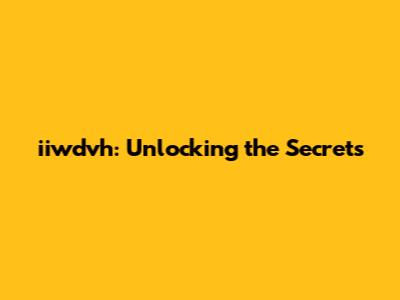 Iiwdvh: Unlocking The Secrets
