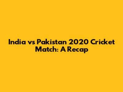 India Vs Pakistan 2020 Cricket Match: A Recap