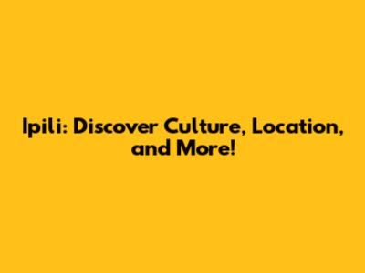 Ipili: Discover Culture, Location, And More!