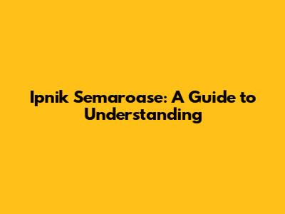 Ipnik Semaroase: A Guide To Understanding