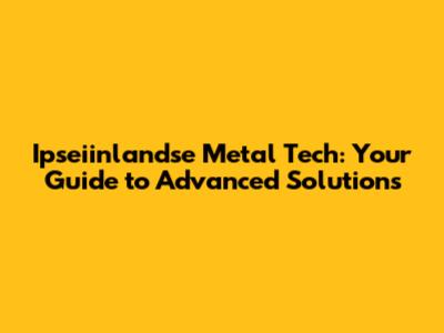 Ipseiinlandse Metal Tech: Your Guide To Advanced Solutions