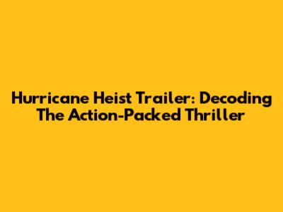 Hurricane Heist Trailer: Decoding The Action-Packed Thriller