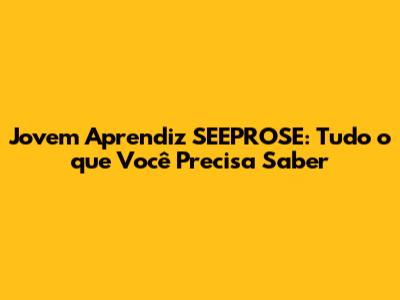Jovem Aprendiz SEEPROSE: Salários, Benefícios E Oportunidades