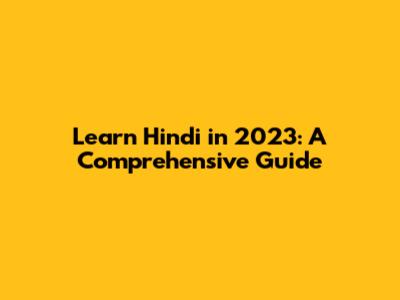 Learn Hindi In 2023: A Comprehensive Guide