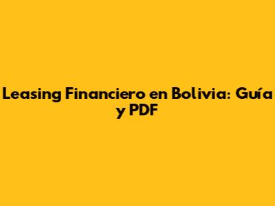 Hey guys! Ever wondered about leasing financiero in Bolivia? It's like renting, but with a cool option to buy at the end! Let's dive into what it is, how it works, and why it might be a game-changer for your business or personal finances. We'll also point you to some handy PDF resources to get you started. So, buckle up, and let's explore the world of leasing financiero!