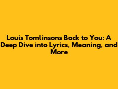 Louis Tomlinson's 'Back To You': Lyrics, Meaning & Deep Dive