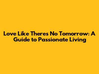 Hey guys! Ever thought about living each day to the fullest? What about loving like there's no tomorrow? It sounds intense, right? But it's all about embracing passion, cherishing moments, and making the most of every single second we have. In this guide, we're diving deep into what it means to truly love like there’s no tomorrow – whether it’s loving people, experiences, or even just life itself. So, buckle up, because we're about to get real about living a life filled with love and passion!