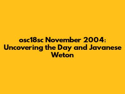 Hey guys! Ever found yourself wondering about a specific date in the past, especially concerning the Javanese calendar? Let’s dive into figuring out what day and weton corresponded to November 2004, specifically focusing on the osc18sc date. This exploration is not just about satisfying curiosity; understanding the Javanese calendar system offers insights into cultural traditions and historical contexts. The Javanese wetonan system is a five-day week (Wage, Kliwon, Legi, Paing, Pon) combined with the seven-day Gregorian calendar, creating a 35-day cycle that repeats throughout the year. Figuring out the exact weton requires understanding this cycle and its relation to the Gregorian date in question. The Javanese calendar, deeply embedded in the cultural fabric of Java, Indonesia, is a lunisolar calendar system that combines elements of both lunar and solar calculations. It is used to determine important dates for traditional ceremonies, agricultural practices, and personal horoscopes, reflecting a deep connection between the cosmos and daily life. Calculating the weton involves knowing the specific date based on the Gregorian calendar and then converting it into the Javanese calendar system, which requires understanding the cyclical nature of the Javanese week and its interaction with the Gregorian calendar. This intricate system underscores the Javanese worldview, where time is not linear but cyclical, influencing various aspects of life from social events to spiritual practices. So, let's get started and figure out the specifics of November 2004!