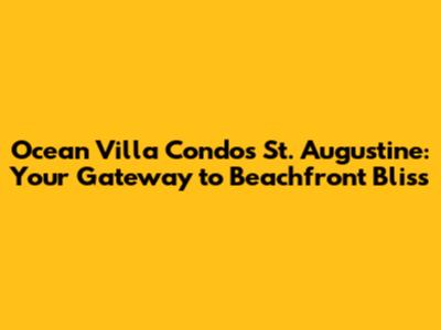 Hey guys! Are you dreaming of waking up to the sound of crashing waves and spending your days with your toes in the sand? Then you've GOT to check out Ocean Villa Condos in St. Augustine! This place is the real deal for anyone looking for beachfront living with a touch of luxury and a whole lot of relaxation. Let’s dive into what makes Ocean Villa Condos such a fantastic place to call home or your next vacation destination.