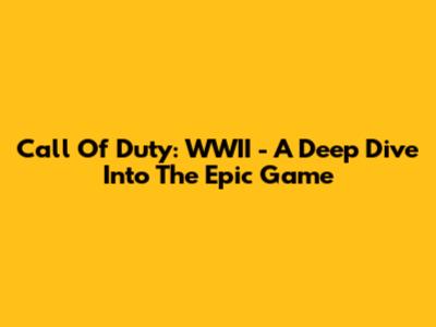 Call Of Duty: WWII - A Deep Dive Into The Epic Game