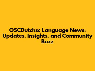 OSCDutchsc Language News: Updates, Insights, And Community Buzz
