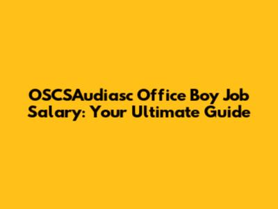 OSCSAudiasc Office Boy Jobs: Salaries, Roles, And How To Apply