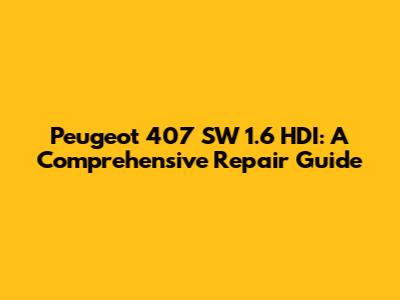 Troubleshooting and Repair Tips for the Peugeot 407 SW 1.6 HDI