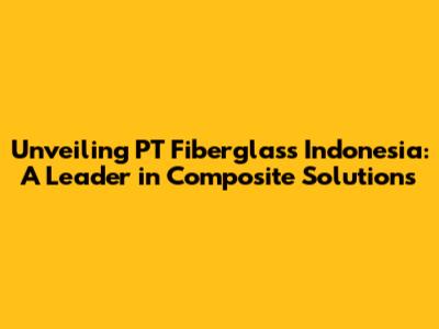 Unveiling PT Fiberglass Indonesia: A Leader in Composite Solutions