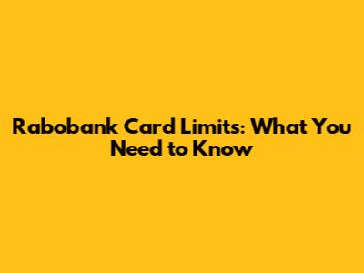 Rabobank Card Limits: What You Need To Know