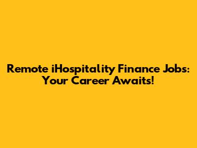 Remote IHospitality Finance Jobs: Your Career Awaits!