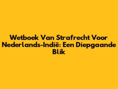 Wetboek Van Strafrecht Voor Nederlands-Indië: Een Diepgaande Blik