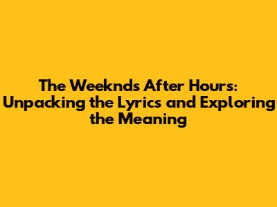 Unveiling the Enigmatic Lyrics of 'After Hours'