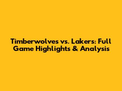 Timberwolves Vs. Lakers: Full Game Highlights & Analysis