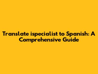 Translate 'ispecialist' To Spanish: A Comprehensive Guide