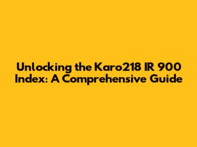 Why is Understanding the Karo218 IR 900 Index So Important?